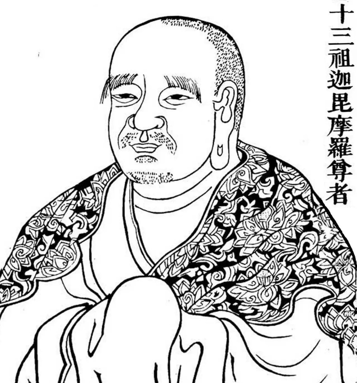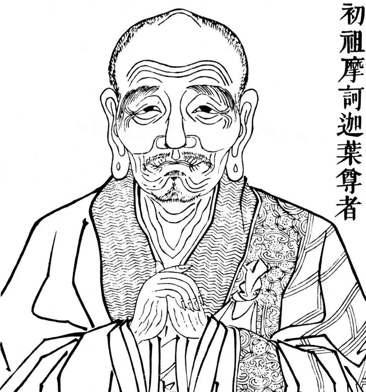 西土初祖摩诃迦叶尊者:即大迦叶(饮光)尊者,佛陀十大弟子之一,头陀行第一。佛于灵山会上付法传示,为禅宗法脉初祖。