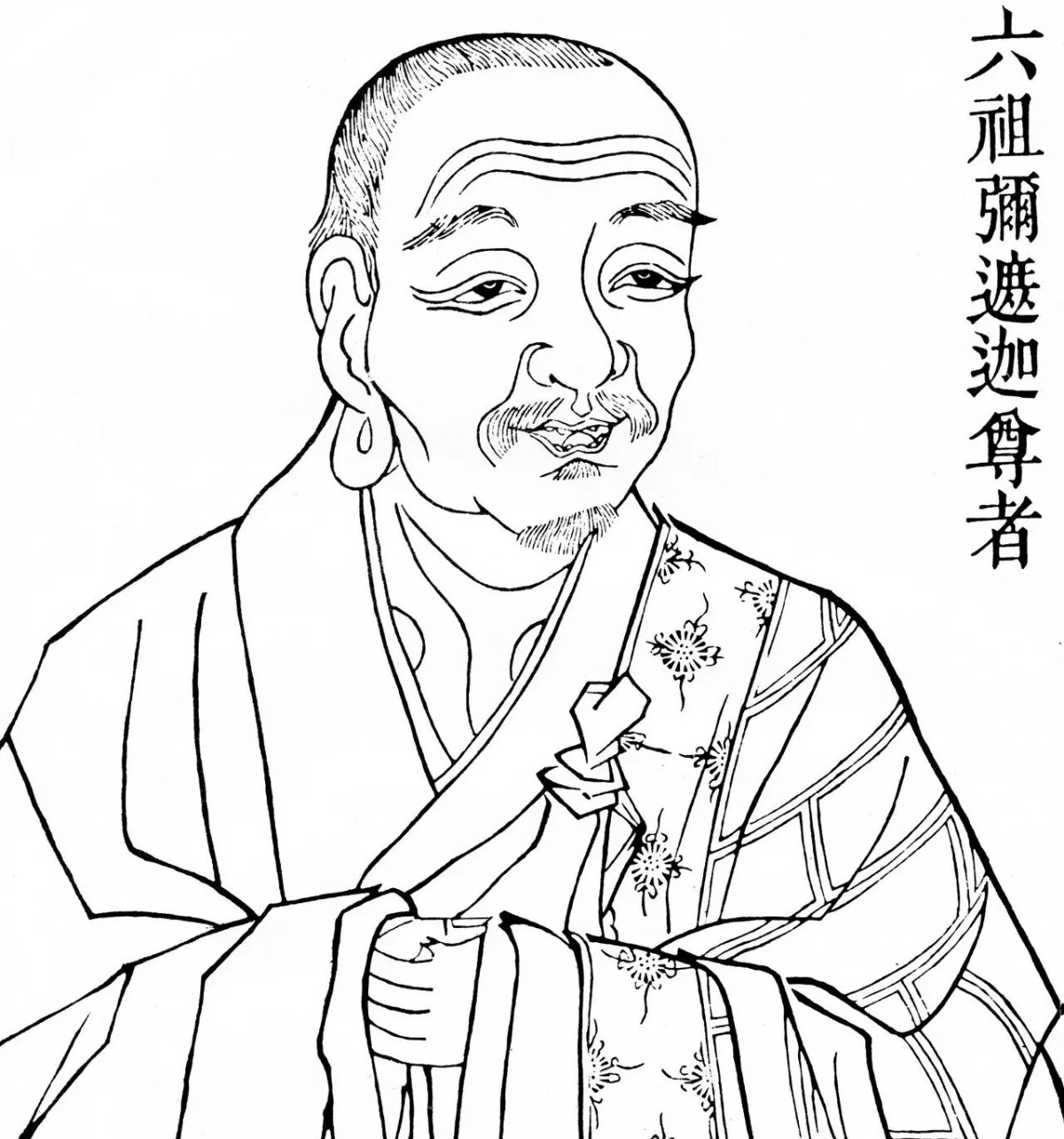 中国禅宗六祖慧能大师(638-713):承启禅宗法脉的一代传奇大师,于弘忍大师得付法印,后弘化于岭南,开曹溪道场,法嗣甚众,禅宗法脉遂得彰兴。有《六祖法宝坛经》传世。