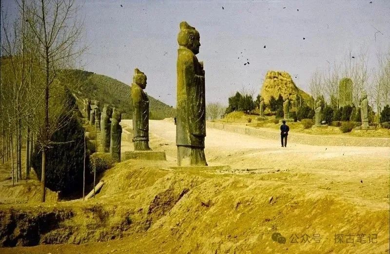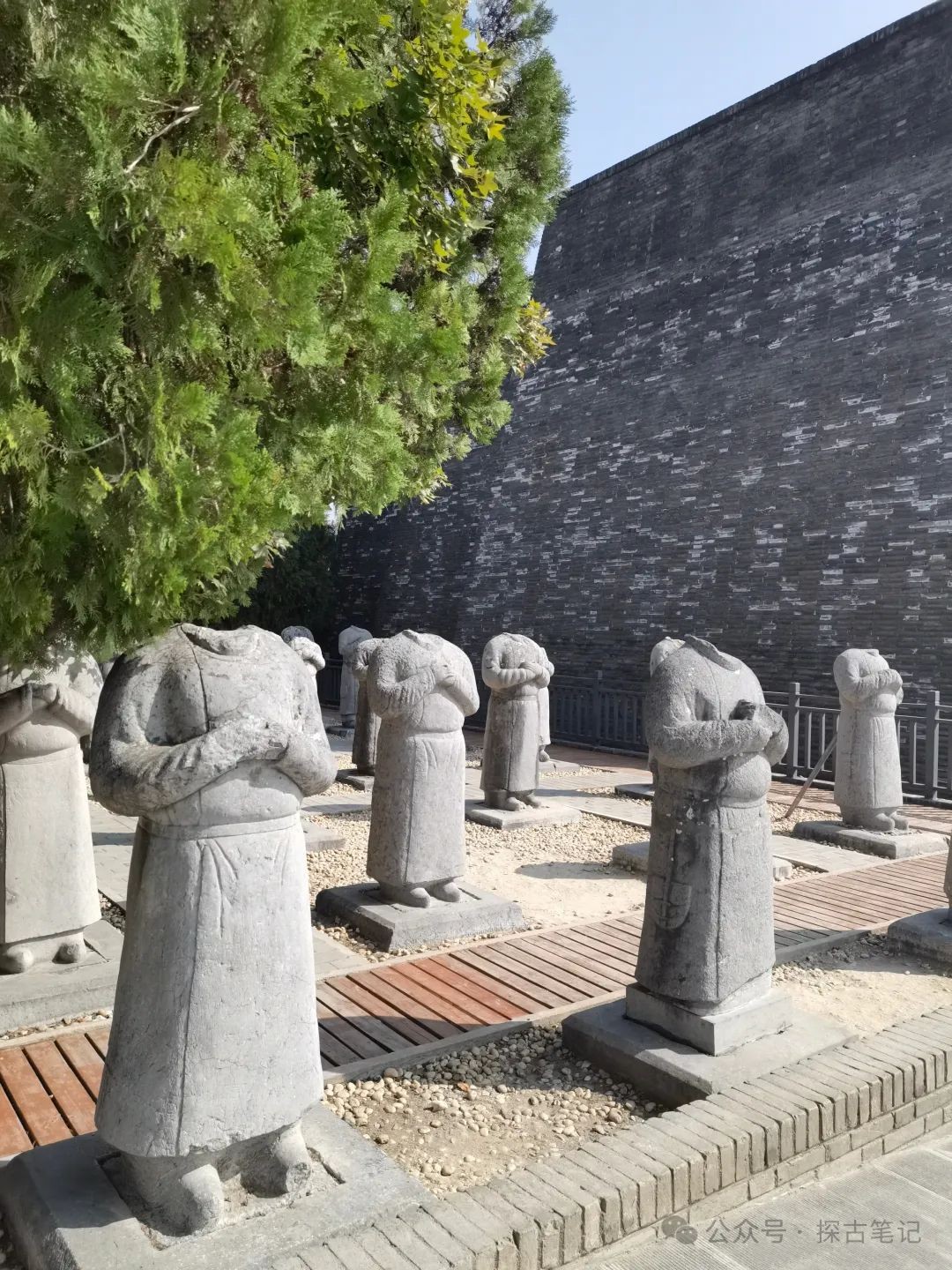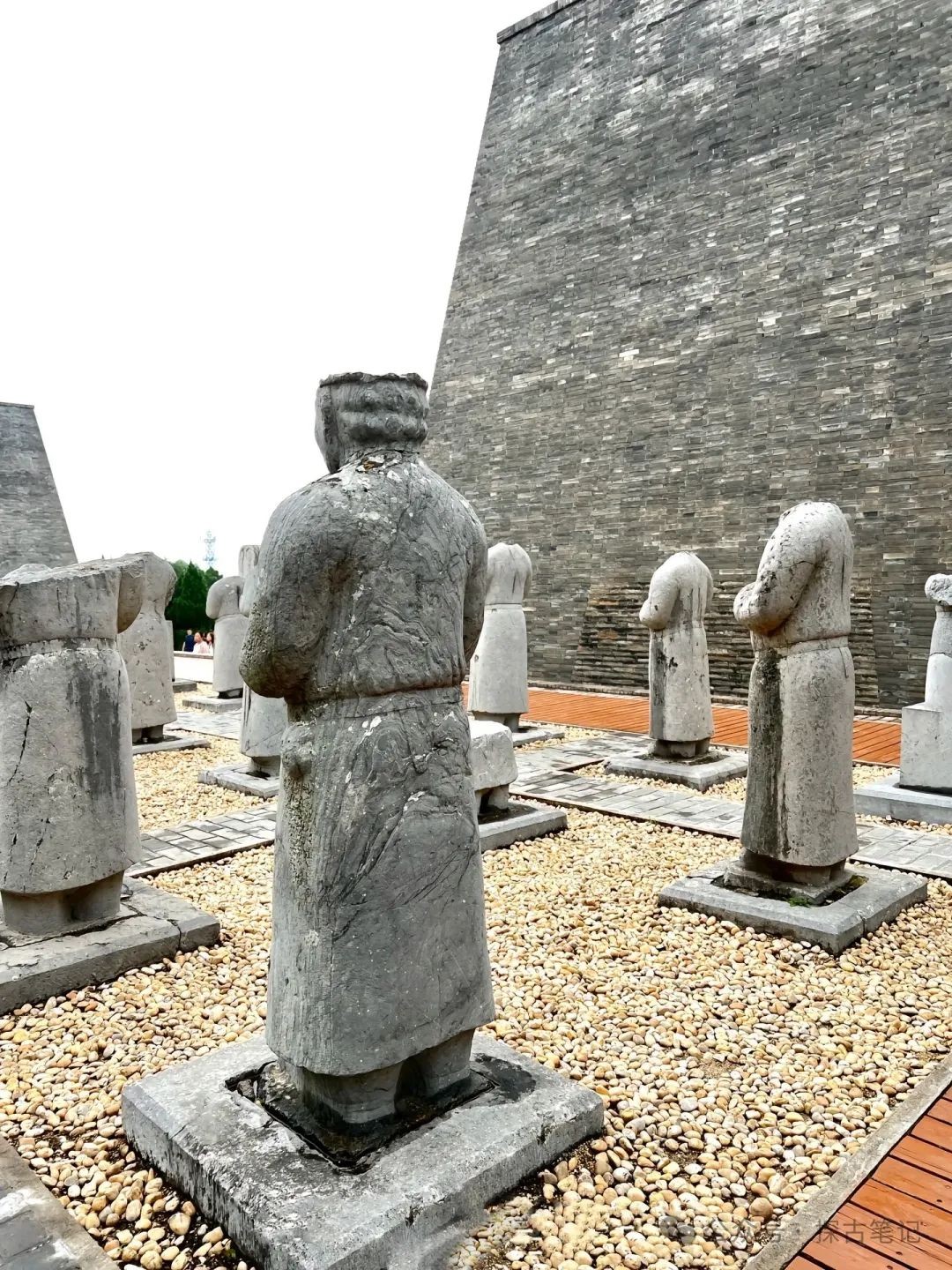 为什么无头石像是无头的?至今是乾陵最大的谜团。这61尊雕像穿着不同的服装,包括束腰外衣、翻领紧袖的、披发左衽的。石像双手前拱,整齐恭敬地排列在陵前,其中32个在西边,29个在东边。传说这些石像原本象征着万国来朝,石像的形象都是诸国的名人,象征着大唐的崇高地位。