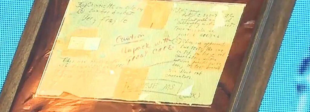 美国芝加哥大学教授夏德安说:“(1946年)子弹库帛书从上海传到美国的时候,(帛书)放装在这个盒子里面,这个盒盖就是证据,并且这个盒盖(盒子)原来藏着子弹库帛书,这个鞋盒的盖子就是在他孙女的这批资料之内,并且上面有很多笔迹,个人写的,也有博物馆,哈佛大学、福格博物馆的标签,是跟这个登记记录有关系的,所以留下来的盒盖变成很重要的一个证据。”